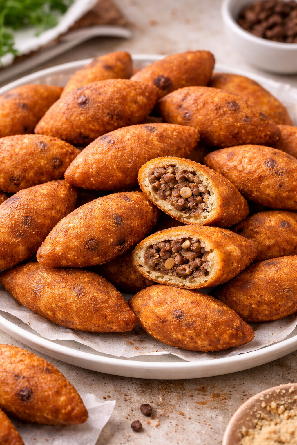 קובה בורגול מטוגנת זהובה ופריכה מבחוץ, עם מילוי בשר עסיסי ומתובל בדיוק במידה. כל ביס משלב קראנץ' מושלם עם לב רך ומלא בטעם עמוק ומנחם. מתכון מסורתי שעובר מדור לדור, מושלם לאירוח, לשולחן שישי או פשוט לפינוק אמיתי של אוכל ביתי עשיר ומלא אופי.